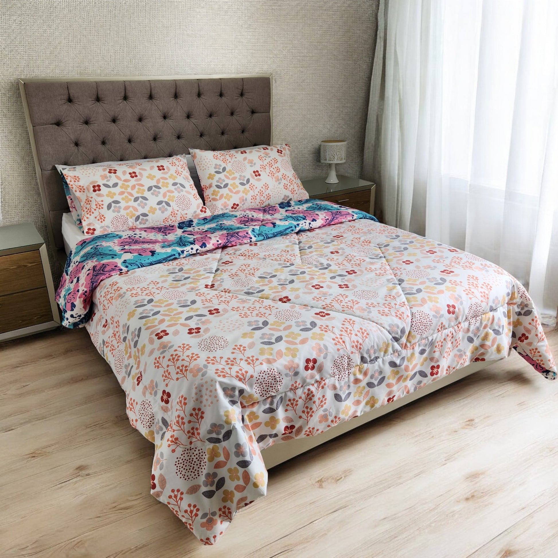Imagina despertar cada mañana en una cama que se ve y se siente como la de un hotel de lujo. Con nuestro Edredón Cubrelecho Doble Faz + 2 Fundas, puedes renovar tu espacio en segundos, gracias a su diseño moderno, versátil y reversible. Disfruta de una cama siempre impecable, acogedora y con un toque de sofisticación.