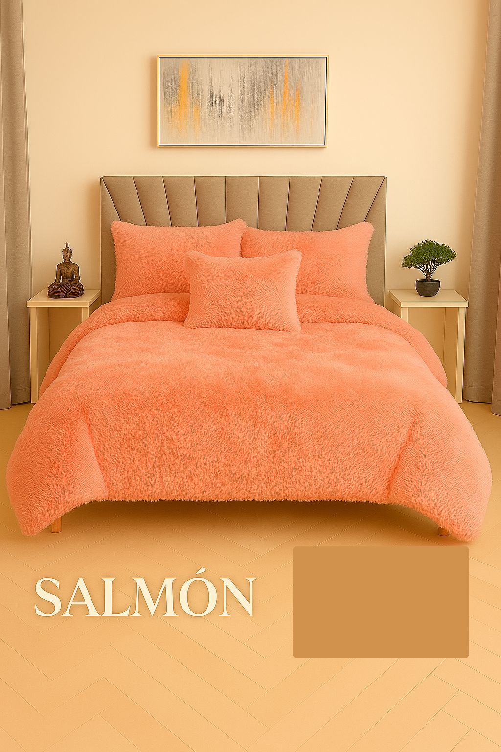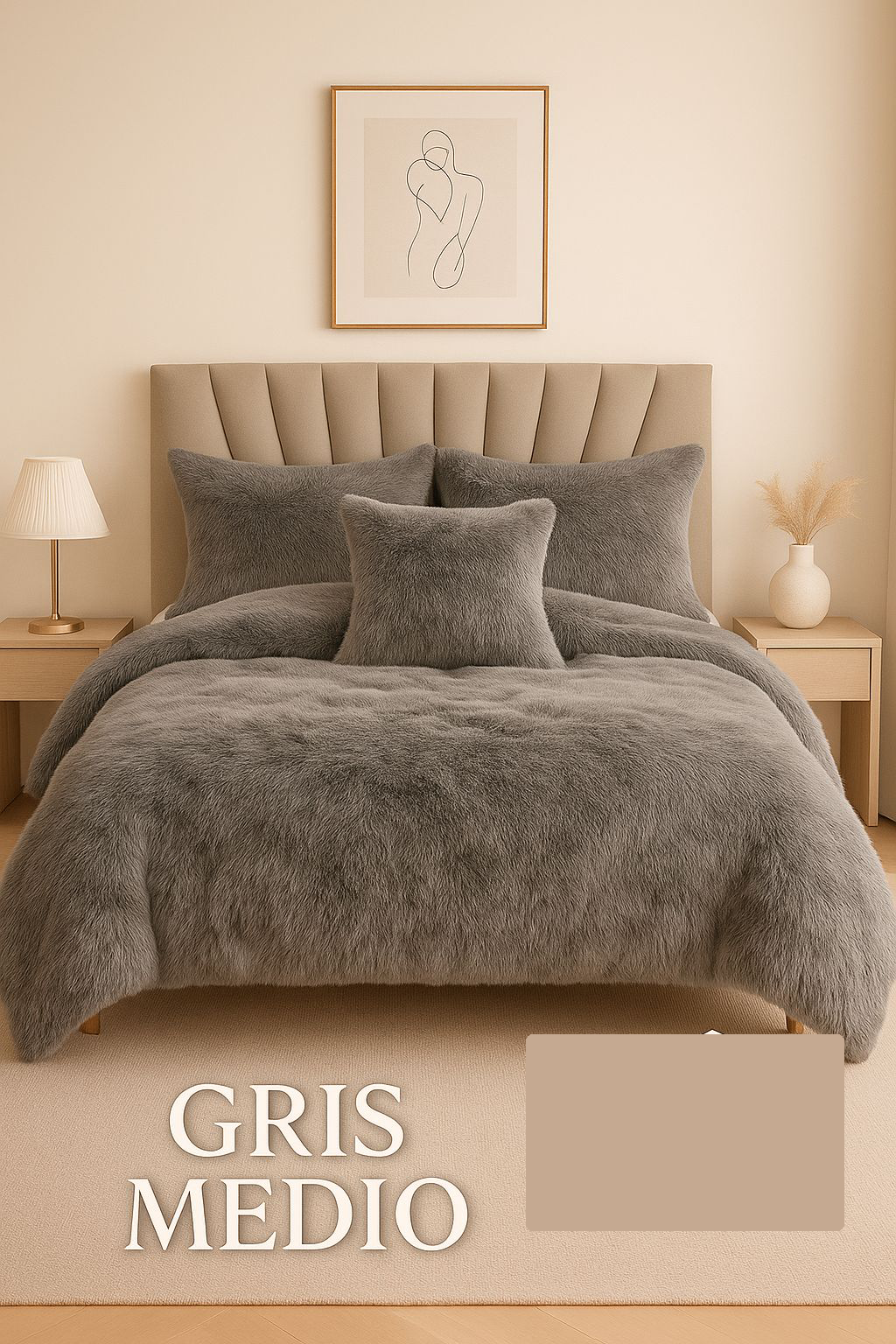 Edredon Peludo Piel De Ganso- INCLUYE 5 PIEZAS [1 Plumón nórdico . 2 Fundas de almohada 2 Fundas decorativas para cojines]