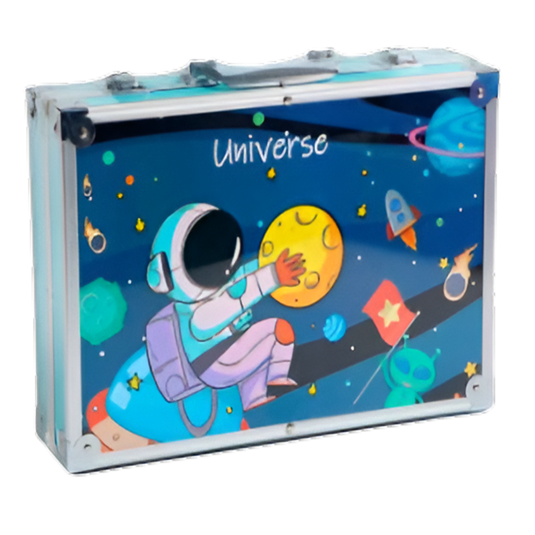 Ayuda a desarrollar la creatividad, imaginación y habilidades de tu hijo con este set de arte. Su diseño en forma de maletín lo hace ideal para llevarlo a todos lados. El set incluye 145 artículos, desde pinturas al óleo y lápices hasta pinceles donde cada objeto tiene su propio lugar. Además, está fabricado con materiales resistentes y ligeros, con asa para el transporte y cierres de seguridad.